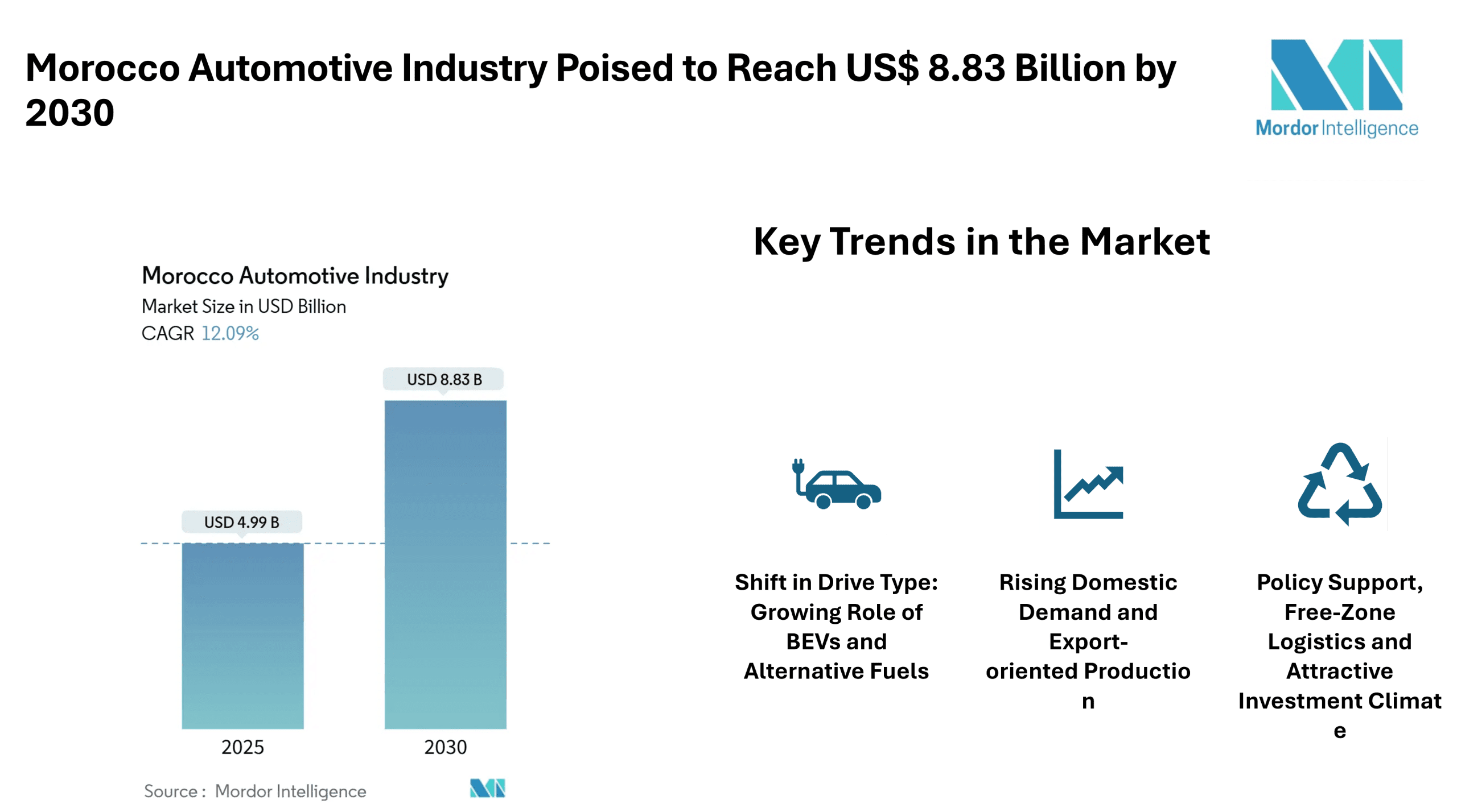 Home Press ReleasesMorocco Automotive Industry Poised to Reach US$ 8.83 Billion by 2030 , Strong Growth Driven by Passenger Vehicles, EV Momentum and Export-oriented Manufacturing – Mordor Intelligence